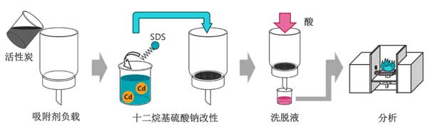 圖1:使用十二烷基硫酸鈉改性的活性炭進行鎘預(yù)濃縮的實驗程序。