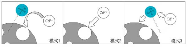 圖2:鎘離子被十二烷基硫酸鈉和活性炭吸引/吸收的反應(yīng)機理。