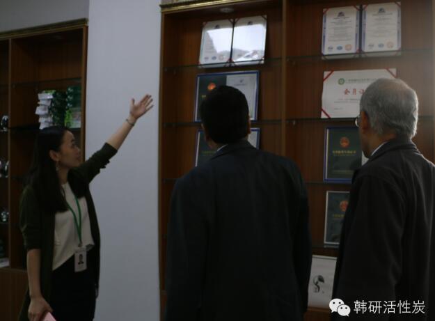 我司外貿(mào)總監(jiān)Jane 帶領來訪的客戶們參觀了我司的證書展示區(qū)(各種認證及專利)、產(chǎn)品展示區(qū)、研發(fā)實驗室、蜂窩活性炭生產(chǎn)車間、椰殼活性炭生產(chǎn)車間等等,讓他們更加真真切切地感受到韓研強大的技術研發(fā)及生產(chǎn)能力。