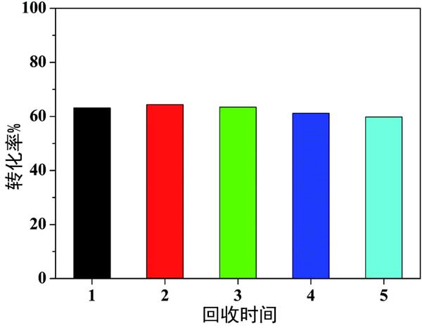 進(jìn)行回收試驗(yàn)以研究活性炭催化劑的異質(zhì)性和穩(wěn)定性。第一次催化反應(yīng)完成后,過濾回收活性炭載鉑催化劑(硫酸活化),用蒸餾水洗滌,55℃真空干燥12小時(shí),重新用于第二次催化反應(yīng)。在另外三個(gè)運(yùn)行中實(shí)施了相同的操作。同時(shí),在第一次運(yùn)行后,通過檢測(cè)回收的活性炭催化劑和濾液中的鉑量。圖3展示了回收試驗(yàn)的結(jié)果。觀察到甲基環(huán)己烷的轉(zhuǎn)化率在59.8-64.4%范圍內(nèi)有小幅波動(dòng),表明活性炭催化劑的活性在重復(fù)使用4次后幾乎沒有下降,表明活性炭催化劑具有良好的穩(wěn)定性。第一次運(yùn)行后,反應(yīng)中的鉑浸出量為0.33ppm。當(dāng)鉑催化劑從反應(yīng)體系中過濾出來時(shí),在濾液中很少觀察到催化反應(yīng),這證明了活性炭載體上的鉑作為非均相活性位點(diǎn)。