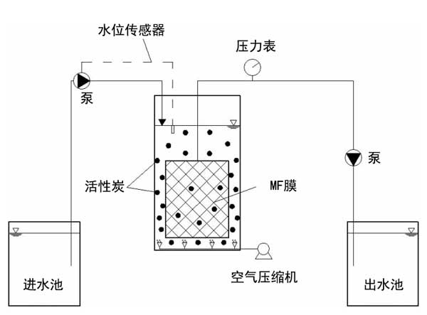 圖1:實驗室規(guī)模的浸沒式膜過濾系統(tǒng)示意圖。