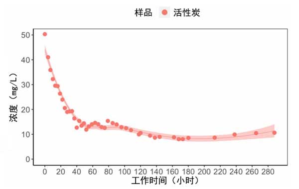 圖2:運行期間主體相中動力活性炭濃度的變化。