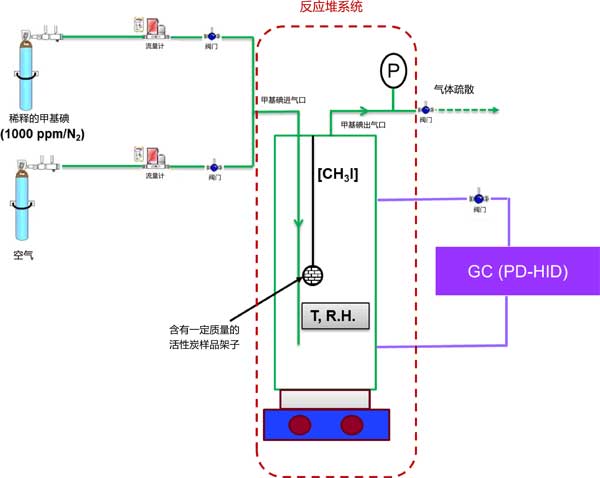 圖1:用于氣相間歇條件下活性炭吸附甲基碘的實(shí)驗(yàn)裝置。