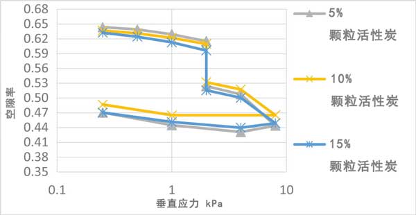 顆;钚蕴渴且环N比粉狀活性炭粒徑更大的碳,通常用于過濾水和空氣中的污染物等。由于其成本低、吸附效果好,被用于各種流行的處理領(lǐng)域;钚蕴恳5%、10%和15%的百分比添加到土壤中,結(jié)果表明增強(qiáng)效果如圖2所示。添加5%活性炭改善的石膏土單次塌陷試驗(yàn)結(jié)果表明,塌陷率已降低至5.55%,而添加10%活性炭處理的樣品在200kPa壓力下的孔隙比從0.610降低到0.610至0.532,導(dǎo)致崩盤可能性降低至4.7%。土樣經(jīng)15%活性炭處理后孔隙比由0.596變?yōu)?.516,坍塌潛力降至4.9%。由于具有微孔的活性炭的物理機(jī)制為良好的吸附提供了理想的環(huán)境,由于吸附材料可以同時(shí)與多個(gè)表面相互作用,活性炭吸附了一些石膏鹽,降低了塌陷潛力。