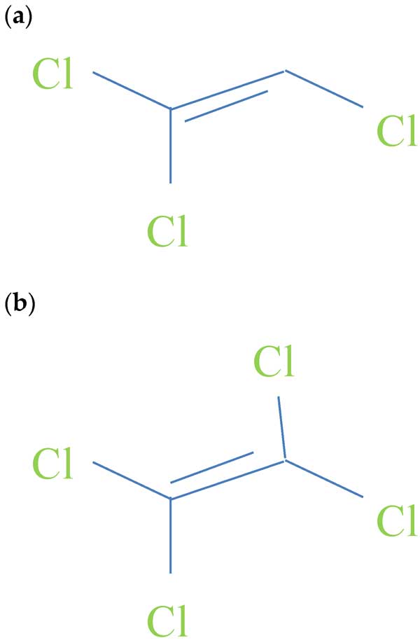 圖1:(a)三氯乙烯和(b)全氯乙烯的結(jié)構(gòu)。