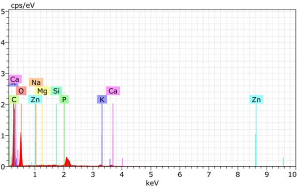揮發(fā)物含量直接在自動近似分析儀中測量。當爐油樣品燃燒完全時,不可燃殘留物通過灰分含量反映出來。在此過程中使用可承受300至400℃溫度的高溫馬弗爐。在空氣中存在氧氣的情況下,某些物質(如水和其他揮發(fā)性元素)會燃燒,而其他物質(包括有機分子)會蒸發(fā)。通過比較灰化前后樣品的重量可以計算出樣品中的灰分含量。固定碳的計算方法是從100中減去揮發(fā)性物質的百分比、水分含量和灰分含量;钚蕴康亩逊e密度是借助密度計。用能量色散X射線分析法分析活性炭的化學成分圖2;钚蕴康腅DAX分析具有由C、O、Zn等組成的元素。