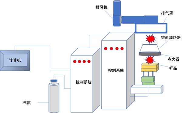 圖1:錐形量熱儀測試裝置結(jié)構(gòu)示意圖。