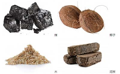 最常用的原料是煤(無煙煤,煙煤,亞煙煤和褐煤),椰殼,木材(軟和硬)和泥炭。許多其他原材料已被評估,如堅果殼,橄欖石和棕櫚仁,但它們的商業(yè)限制總是在于原料供應(yīng)。