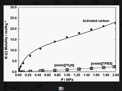 在活性炭上的吸附是選自顯著高于在離子液體中的溶解度 。在活性炭吸附的選自在2 MPa和298 K達(dá)到約22.7摩爾公斤−1而在離子液體的吸收達(dá)到約2.37摩爾公斤−1在2 MPa和298 K的活性炭具有一級吸附容量相對于離子液體。