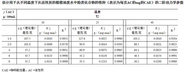 橄欖油廢水中酚類化合物處理由大多都由活性炭來吸附,本期帶大家了解活性炭的吸附劑量和溫度的影響。在最佳條件下(每100毫升8克活性炭),每克活性炭表示當(dāng)量mg的活性炭的最大吸附容量為10.8℃時(shí)為35.8℃,25℃為35.4℃,40℃時(shí)為36.1℃ C。偽二階模型被認(rèn)為是最適合于動力學(xué)結(jié)果,并且選擇Langmuir等溫線來更好地描述吸附系統(tǒng)。結(jié)果證實(shí)了活性炭從橄欖油流出物中幾乎除去所有酚類化合物部分的效率。