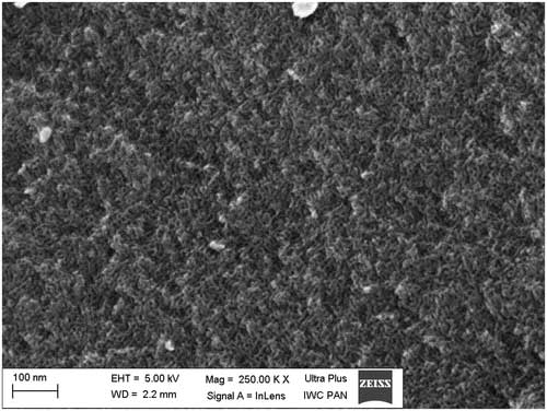 采用檸檬酸應(yīng)用合成方法,通過(guò)軟模板法獲得活性炭 。在實(shí)驗(yàn)的低溫(-196℃)氮吸附-解吸等溫線的基礎(chǔ)上確定了表征所研究活性炭的介孔結(jié)構(gòu)的基本標(biāo)準(zhǔn)參數(shù)。對(duì)于獲得的活性炭圖像,使用掃描電子顯微鏡(SEM),發(fā)現(xiàn)活性炭材料具有有序的,均勻的多孔結(jié)構(gòu),中孔尺寸約6nm(圖1)。
