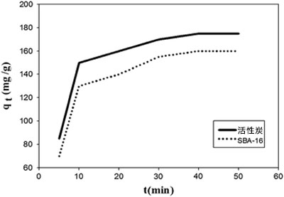 圖2:活性炭和SBA-16吸附脫硫的比較(DBT:1,000 mg / L,吸附劑用量:20 mg / L,溫度:25°C,攪拌時間:360 min)。