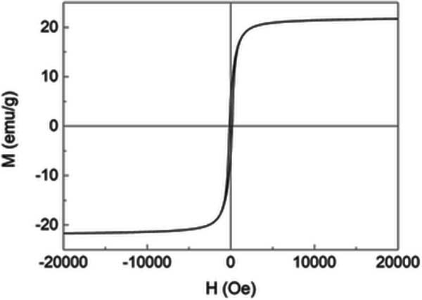 活性炭復(fù)合纖維材料在室溫下-20000至20000 Oe范圍內(nèi)的磁滯回線在圖3顯示,其形狀是典型的S曲線,對應(yīng)于超順磁行為。包括飽和磁化強(qiáng)度Ms,磁矯頑力HC和剩余磁化強(qiáng)度Mr的磁特性。活性炭復(fù)合材料的Ms低于塊狀Fe3 O4,這可以通過活性炭載入Fe3O4納米粒子來解釋,這與發(fā)現(xiàn)的結(jié)果非常一致。
