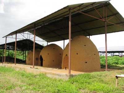 在這個過程中,活性炭前植物材料被切成均勻尺寸堆在窯中水平堆放(圖1)。然后用磚塊封閉門,并在外面抹上泥漿,以便更好地隔熱并防止泄漏。通過在水平和垂直方向上調(diào)節(jié)開口將溫度保持在400-500℃來實現(xiàn)碳化。所有開口在2天后關(guān)閉,以便不允許空氣進(jìn)入窯以防止活性炭原炭化料著火。冷卻一天以將溫度降低至100℃。將炭化料從窯底部的開口中取出并洗滌,干燥并粉碎,并進(jìn)一步進(jìn)行化學(xué)活化,兩種活性炭分別用硝酸和磷酸活化獲得四種不同屬性的活性炭。并用蒸餾水洗滌活性炭以除去過量的酸,并在150℃下干燥12小時,獲得的粉末狀活性炭具有40-50μm篩目的粒度。
