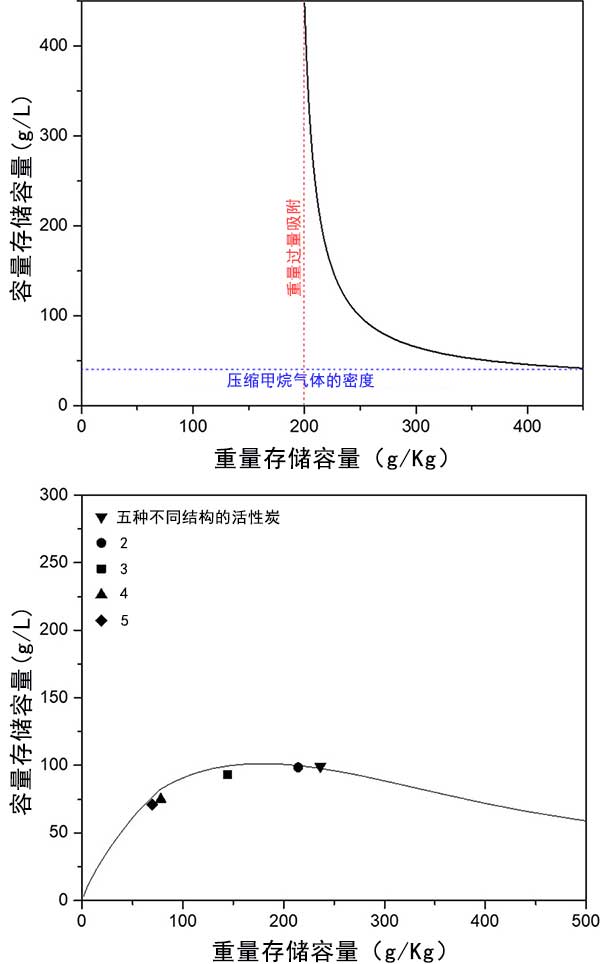 圖3:活性炭的重量和體積儲存容量之間的關系。