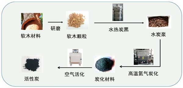 圖1:制備活性炭的環(huán)節(jié)示意圖。