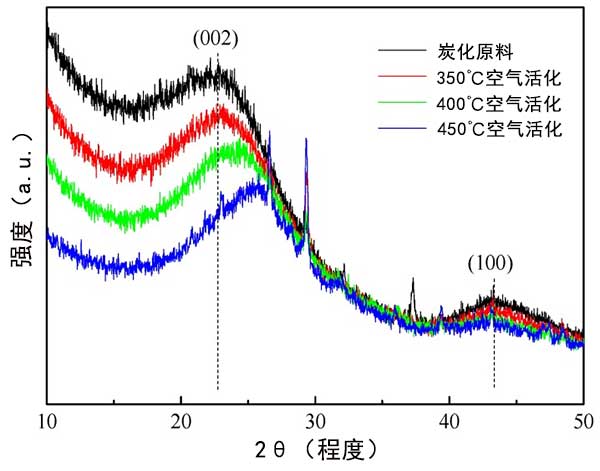 圖3:空氣氧化的活性炭X射線衍射(XRD)圖案。