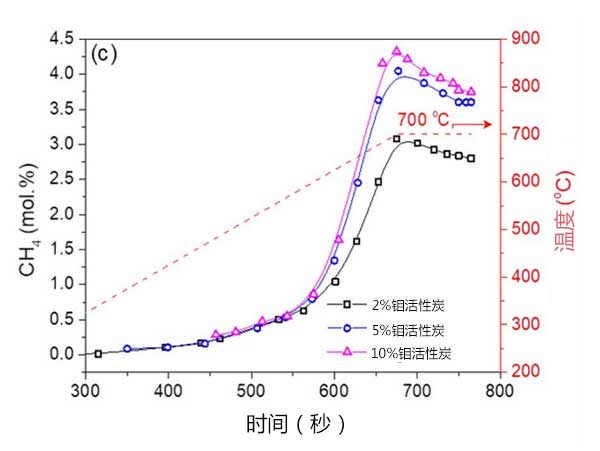 圖2:在碳熱還原過(guò)程中產(chǎn)生的CH4(mol.%)的分布。