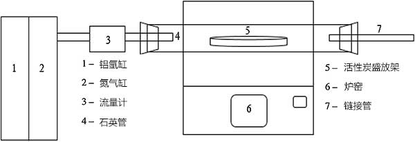 將三種棕櫚廢物預(yù)處理的樣品碳化并通過(guò)一步法在700℃下在氬氣流下使用管式爐以10℃/min的加熱速率活化。當(dāng)達(dá)到700℃的設(shè)定溫度時(shí),以5L/min的流速代替氮?dú)獾臍鍤饬,以活?小時(shí)的保持時(shí)間。圖2顯示了一步物理活化的實(shí)驗(yàn)裝置的示意圖。然后使樣品冷卻并儲(chǔ)存在密閉容器中以避免孔吸附大氣氣體。