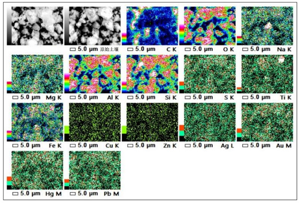 圖6:B區(qū)土壤樣品(被重金屬?gòu)U物污染)的元素圖。