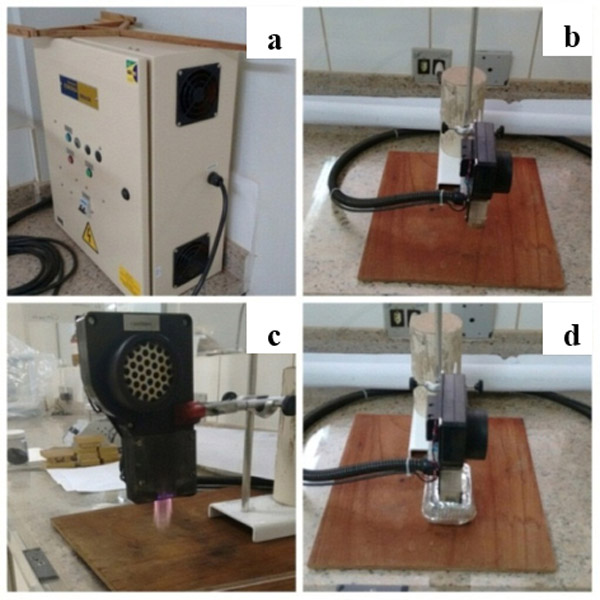 電處理用于促進(jìn)樣品的表面氧化。將樣品放在鋁箱中(圖1d),目的是為了均勻處理并避免過程中的損失,因?yàn)榛钚蕴砍史勰,并且與放電接觸會(huì)造成損失。使用了四種電處理,改變了樣品對(duì)放電的暴露時(shí)間。標(biāo)準(zhǔn)處理方法之一(T1)。因此,在該處理中沒有進(jìn)行曝光放電。其他處理的曝光時(shí)間分別為2、5、8和10分鐘(分別為T2,T3,T4和T5)。每次處理稱重約2.0 g的活性炭。電擊頭部高度確定為4.5厘米。
