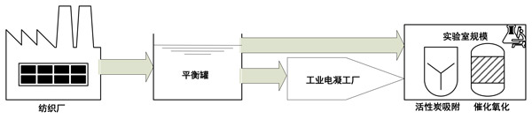 來自紡織廠的紡織廢水被存儲(chǔ)在均衡罐中,并轉(zhuǎn)移到工業(yè)規(guī)模的電凝處理廠。此后,如圖1所示,在實(shí)驗(yàn)室中進(jìn)行了催化臭氧氧化,然后進(jìn)行了吸附階段。單次吸附:在催化臭氧氧化之前,對(duì)于所有催化劑,吸附實(shí)驗(yàn)均進(jìn)行了30分鐘。將活性炭催化劑直接添加到廢水中。吸附在與臭氧化處理相同的反應(yīng)器中進(jìn)行,但沒有臭氧入口以維持均勻的實(shí)驗(yàn)條件。所有實(shí)驗(yàn)條件與臭氧化處理期間相同。溫度保持穩(wěn)定并且等于23±1℃。活性炭催化臭氧化:使用與吸附和臭氧化相同的反應(yīng)器進(jìn)行催化臭氧化。所有實(shí)驗(yàn)條件與臭氧化處理期間相同。對(duì)于所有催化劑,每次催化劑濃度為0.5g/L。反應(yīng)后,進(jìn)行催化劑的過濾(0.45μm過濾器)。